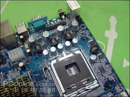 3 K- ^; c& t! ~; k 虽然价格压到如此至低,MS-P35仍然坚持提供了千兆网卡,板载5.1声道声卡;主板I/O接口处提供有SPDIF同轴接口,还保留了一个COM口。