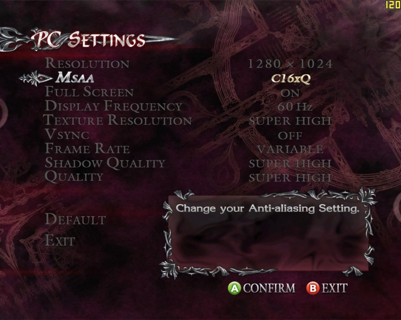 原帖由 502 于 2008-6-9 03:01 发表 1650GT 1024x1280 noaa 特效全高,都可以比较流畅,这游戏做得算厚道... 去弄个补丁没时间限制,火麒麟可以慢慢弄,很多东西可以补hp~~ 第一次玩鬼泣系列,觉得主角太做作....