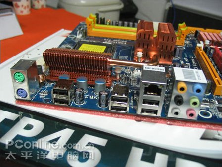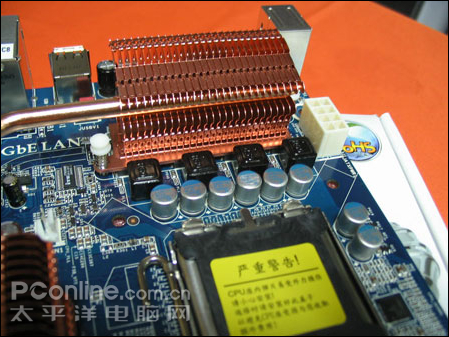 依然采用四相供电设计,使用PS系列优质固态电容和密封式电感,加上24+8pin电源接口,用料还是相当扎实的。另外还有一体式的热导管散热器,与TPower I45没有太多的区别,不过由于不属于TPower产品,所以缺乏了TPower的LOGO。