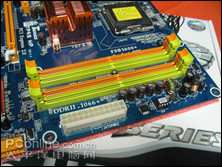 提供4条DDR2内存插槽,双通道DDR2 1066/800MHz内存,最大支持8GB内存。提供两条PCI-Express X16插槽,符合PCI-E 2.0规范,支持CrossFireX模式,还具有2条PCI-Express X1插槽,2条PCI插槽。