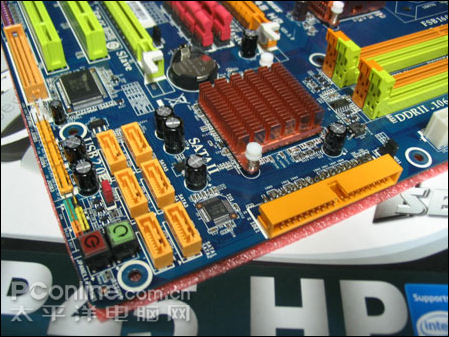 :映泰 TP45 HP与早前的TPower I45,两者有着一些细微的区别,如全固态电容用料、热管的造型、PCB底板、取消LED诊断灯、更换成ICH10南桥等细节,由于这些细小的差异,导致了一百元的差价,不过对于普通的消费者来说,这些区别都并不是十分重要,相信映泰 TP45 HP主板以899元上市价格,还是有不小的吸引力。