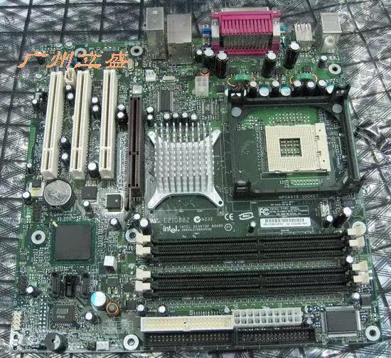 主板: intel D865GLC,小板,适合玩小机箱追求性能的朋友。有挡板,集成声卡网卡,不集成显卡,4根内存插槽,2个SATA口
